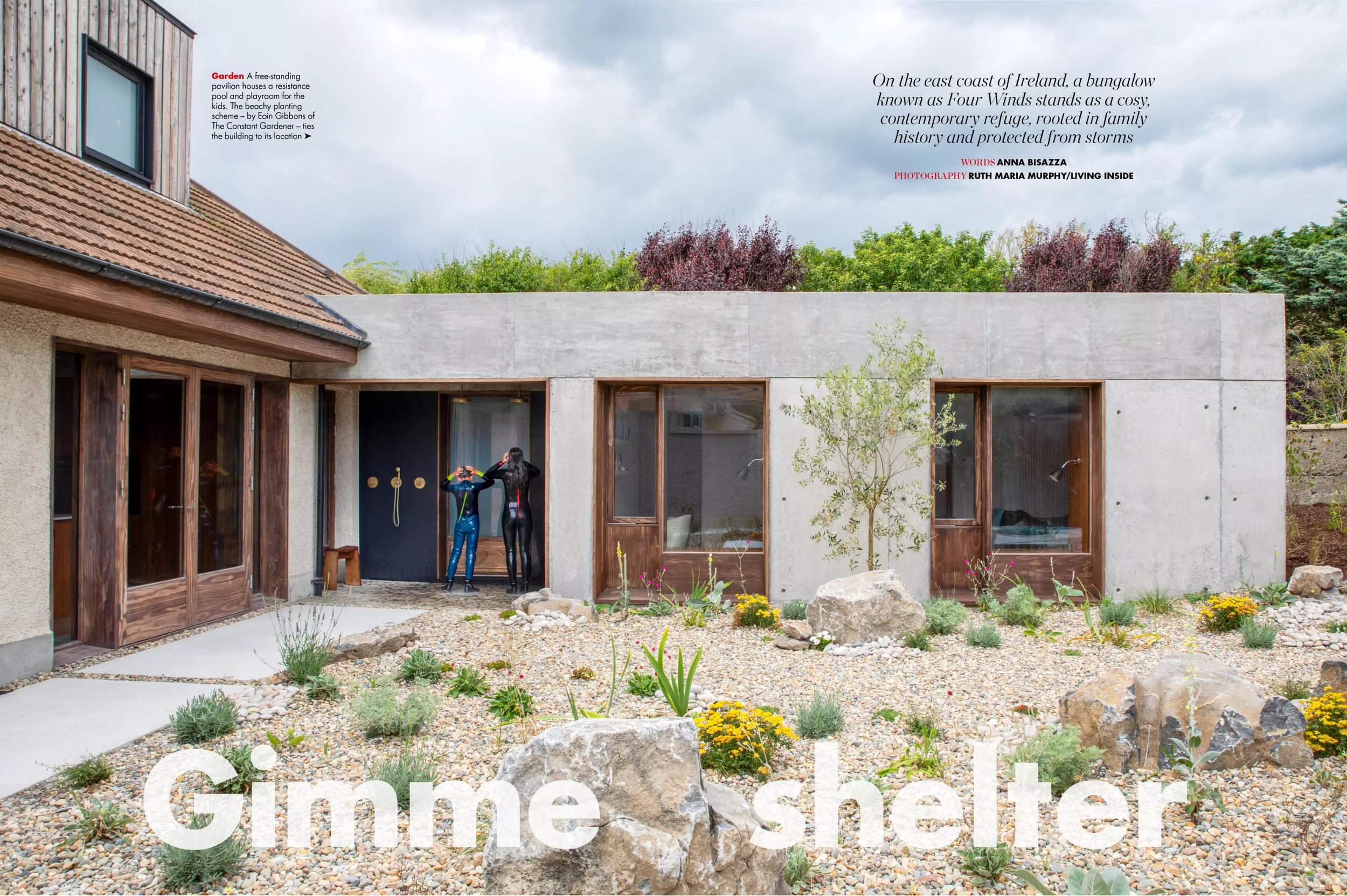 Brennan Furlong replaced an existing front dormer window to house the relocated principal bedroom and added a timber-clad “tower” to one side, which serves as a home office. At the back of the property, they designed a rectangular concrete extension to house showers for the children who are water sports enthusiasts — Sutton Dinghy Club is right across the road — and inside, they created space for a small but functional current pool.